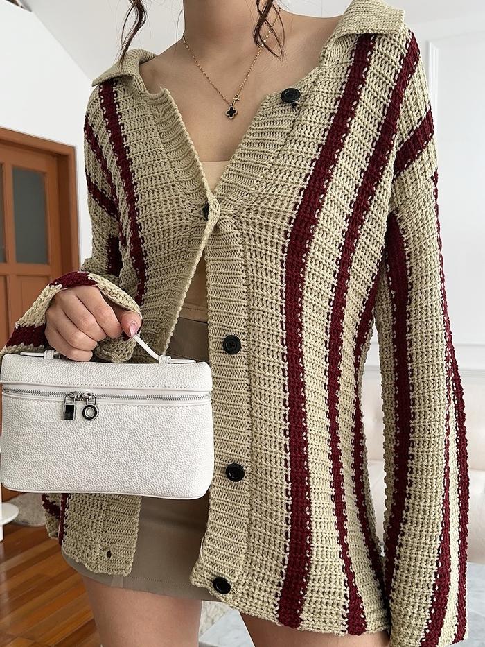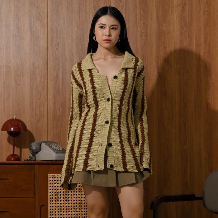 Suetercloth - Nagoya Longsleeve Knit Cardigan / Cardigan Wanita Berkerah Premium / Cardigan Stripes Motif Knitwear Panja