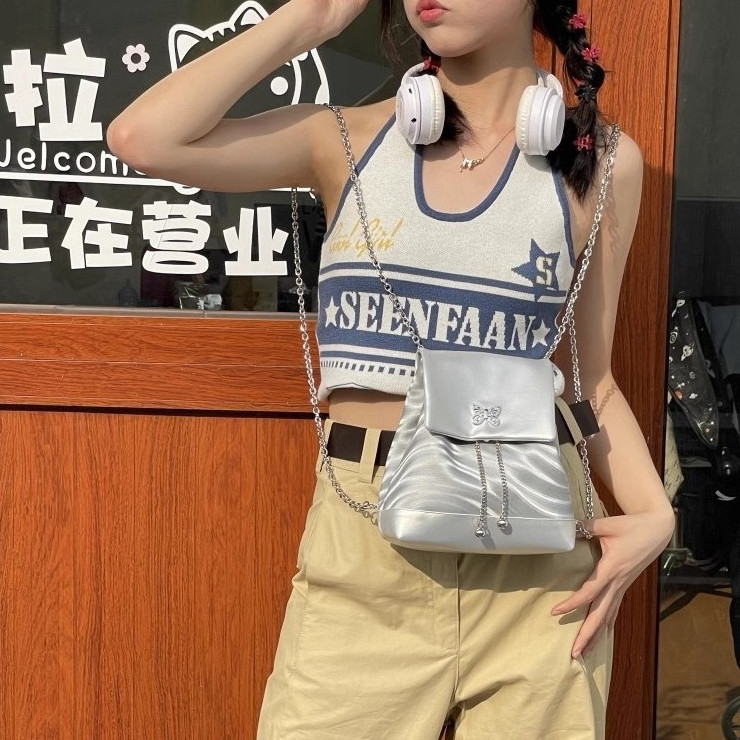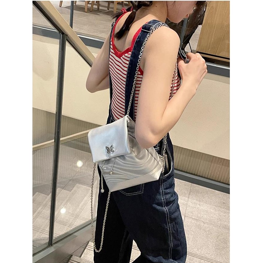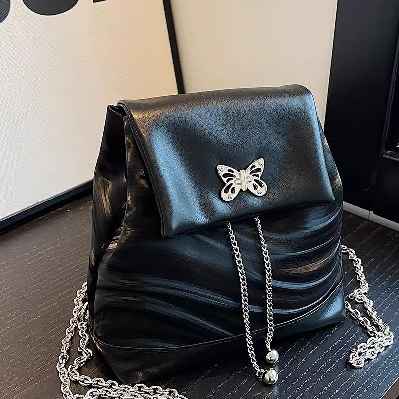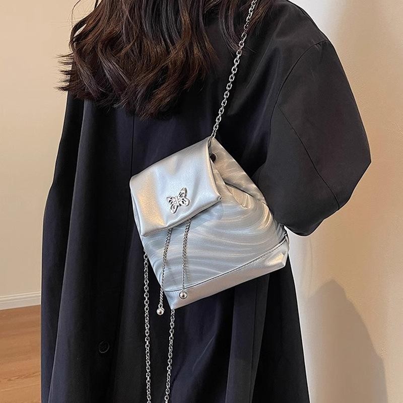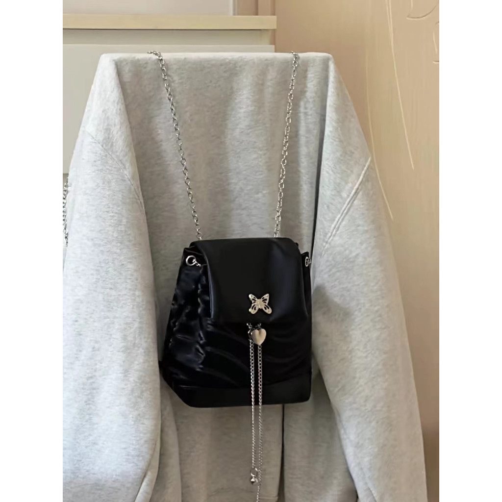 Tas Ransel Wanita Korea Style Slingbag Ringan dengan Tali Rantai dan Motif Kupu-Kupu untuk Daily Use atau Travel DMTS154