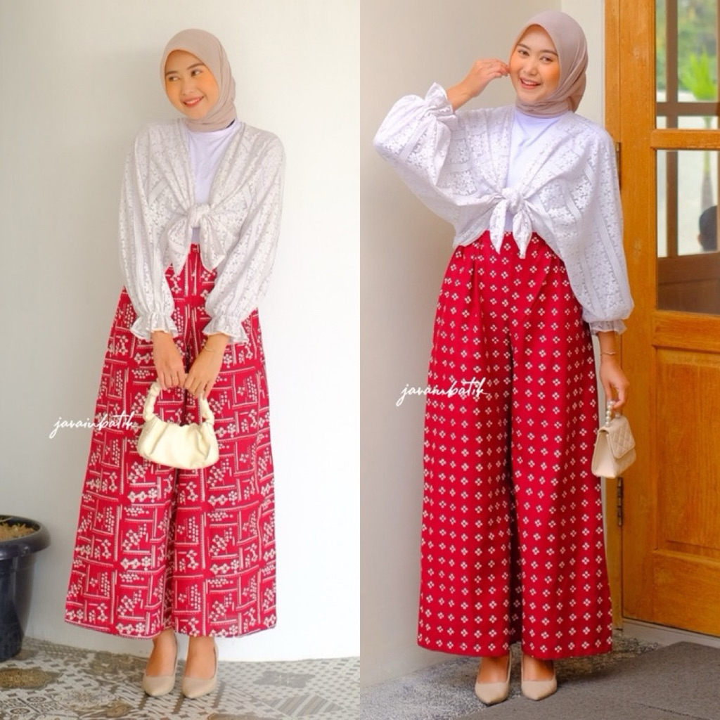 JUMBO CELANA KULOT BATIK MERAH PUTIH OUTFIT KEMERDEKAAN KULOT PALAZZO WANITA DEWASA