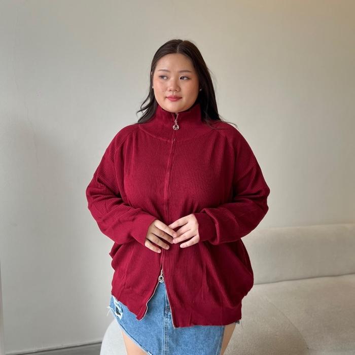 Megan Atasan Wanita Outer Jumbo / Cardigan Sleting Big Size / Jaket Wanita - Merah