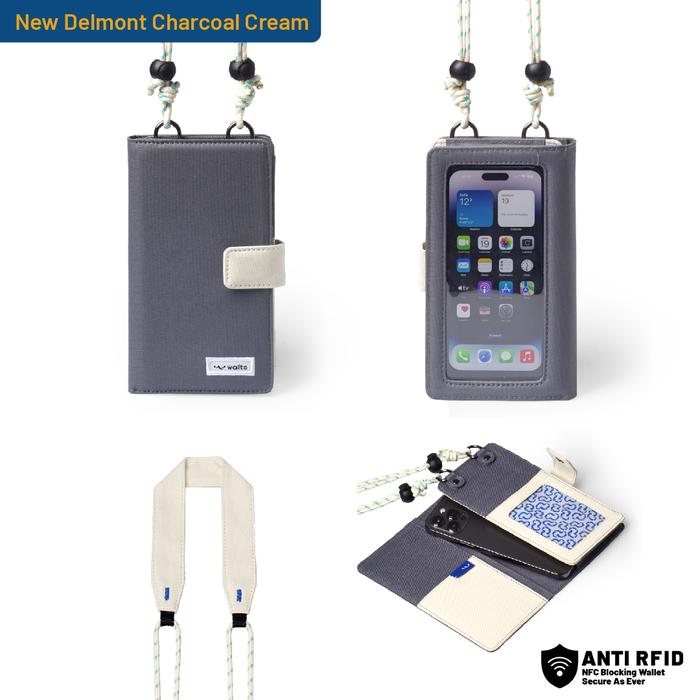 Wallts New Delmont Phone Wallet - Tas Dompet Hp Selempang Wanita Dan Pria Kanvas Slingbag Cowo - Black Charcoal