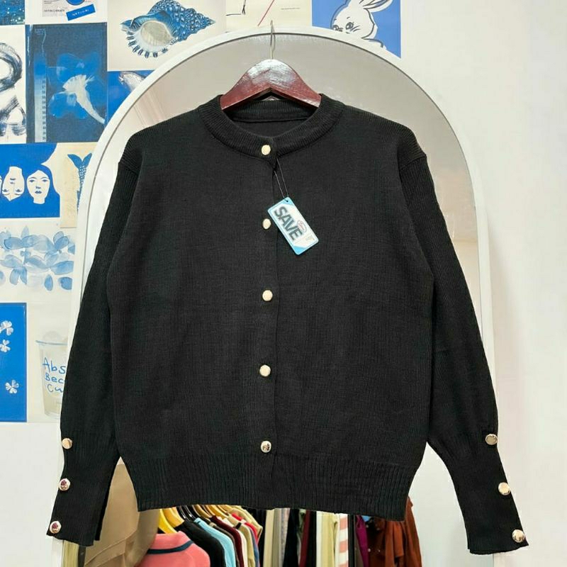 INARA STARLA KARDiGAN RAJUT BASIC KANCING GOLD TEBAL KARDIGAN ATASAN WANITA
