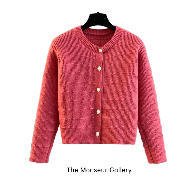 The Monseur Gallery Cardigan lengan panjang retro gaya Korea kardigan rajutan lengan panjang Atasan crop berkerah V