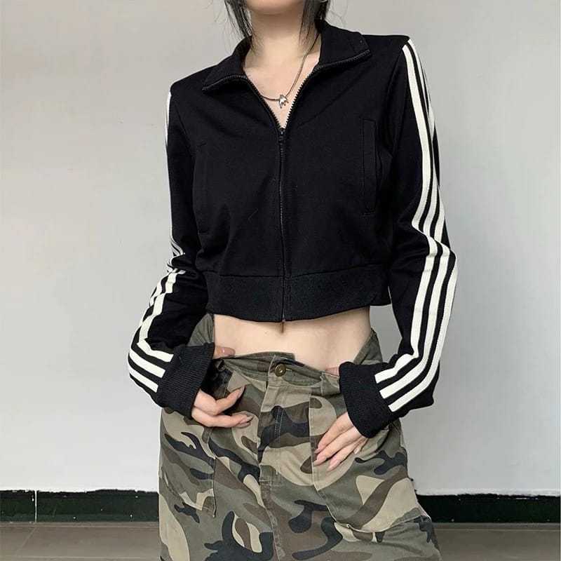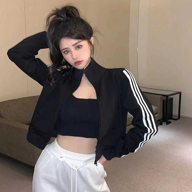 Stand Collar Jaket Vintage Crop Wanita - Jaket Crooped Wanita Korean Style