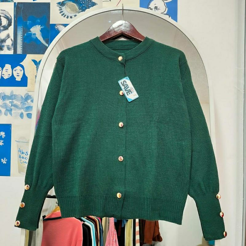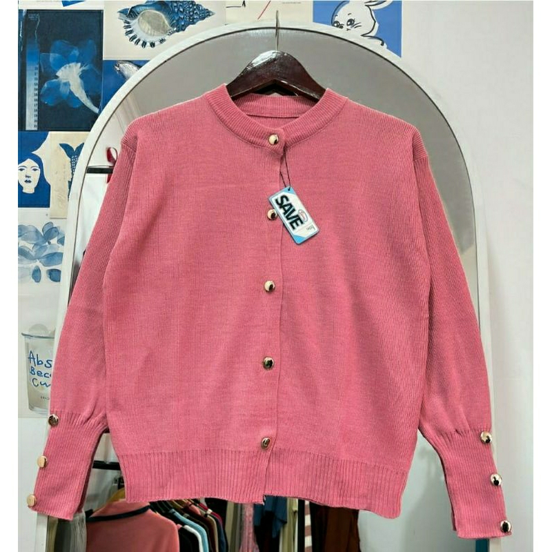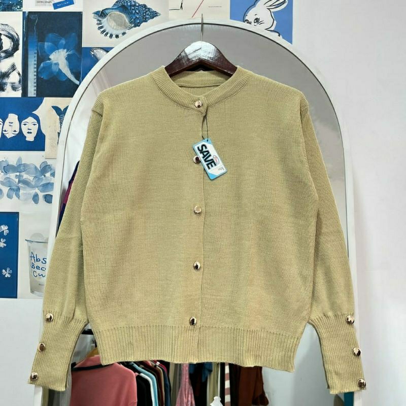 INARA STARLA KARDiGAN RAJUT BASIC KANCING GOLD TEBAL KARDIGAN ATASAN WANITA