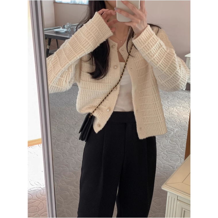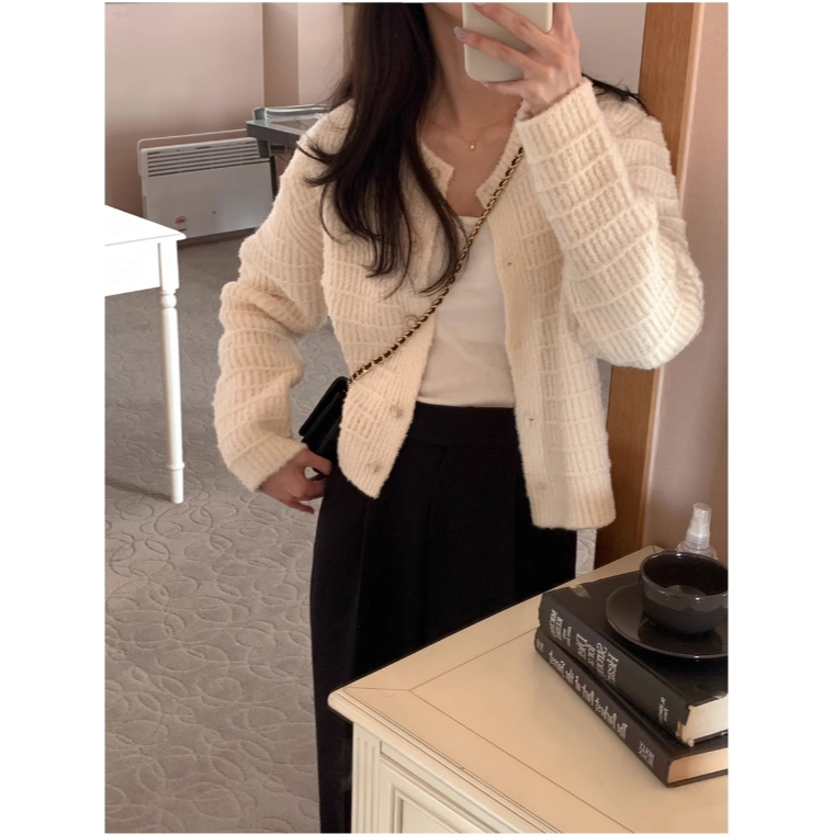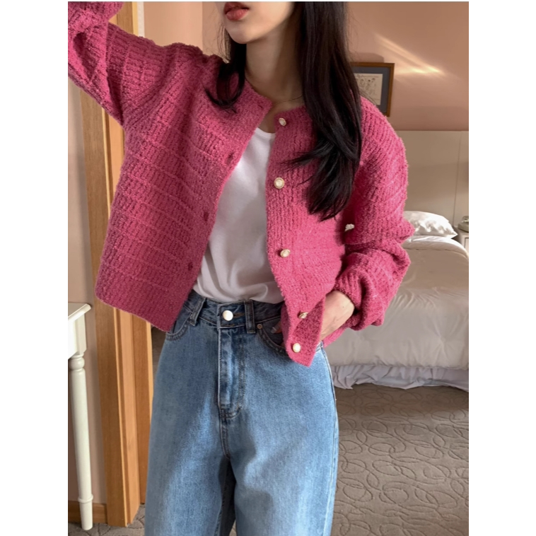 The Monseur Gallery Cardigan lengan panjang retro gaya Korea kardigan rajutan lengan panjang Atasan crop berkerah V