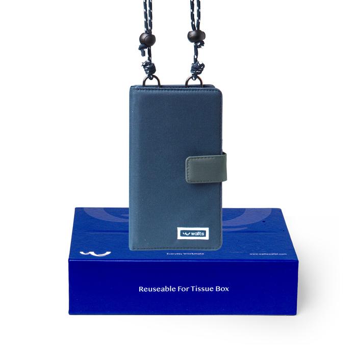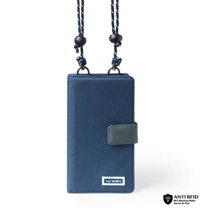 Wallts New Delmont Phone Wallet Navy-Charcoal - Tas Dompet Hp Kanvas Selempang Wanita Dan Pria Slingbag - Navy-Charcoa