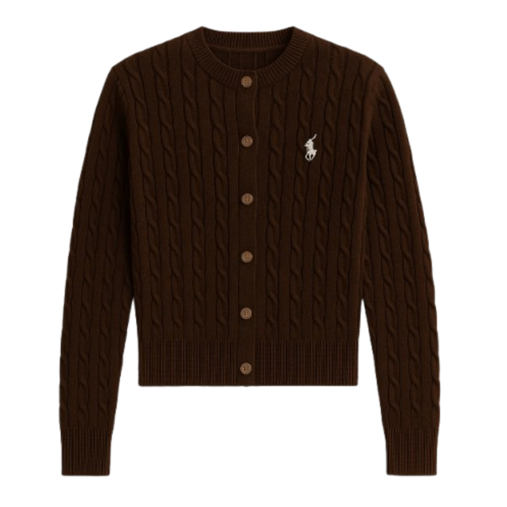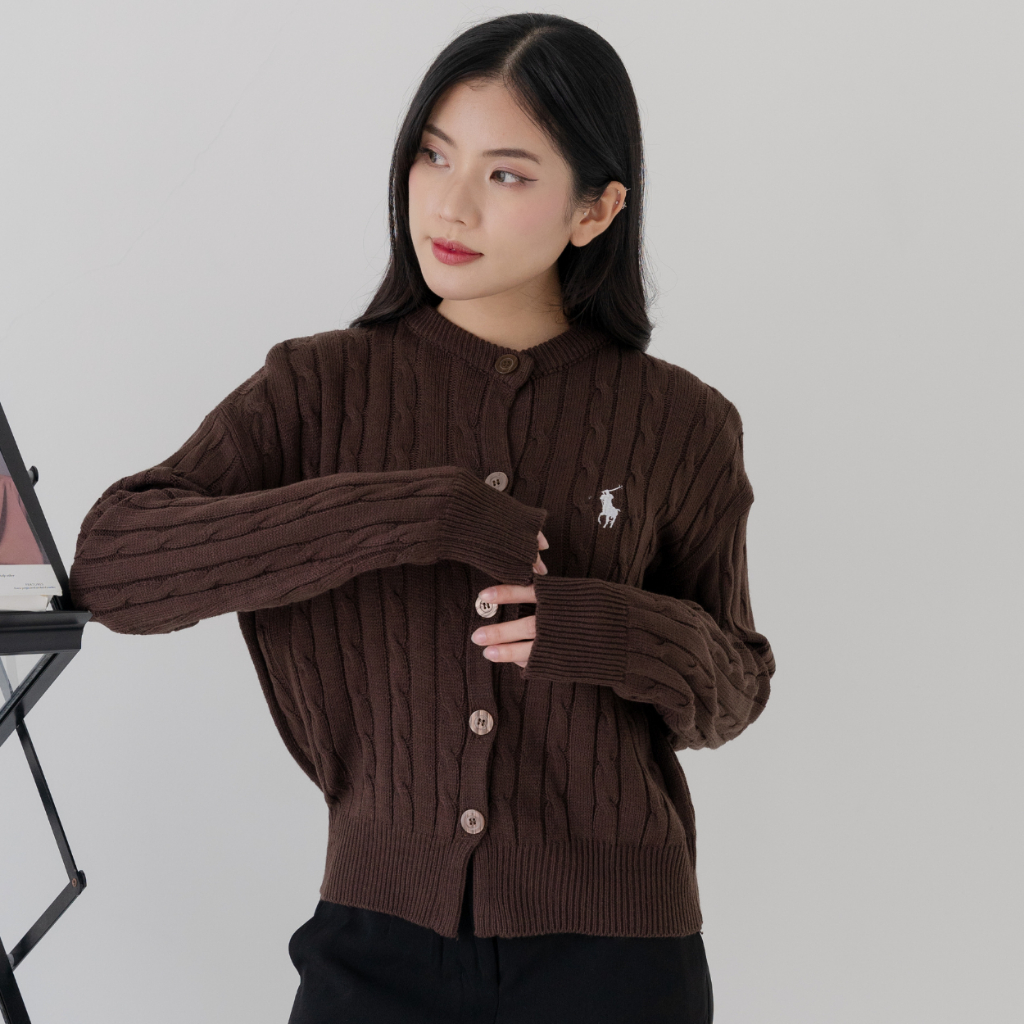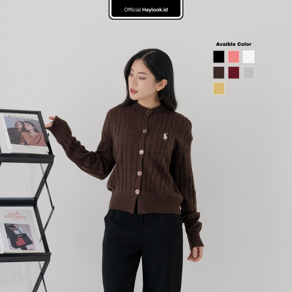 Haylook.id Daisy Cable Cardy Knit Top - Rajut Korean Style Cardy Premium – Pakaian Wanita Cardigan - Atasan Wanita tan