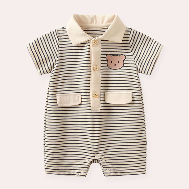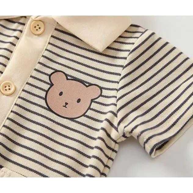 Jumper Bayi Pendek Laki Laki Motif Salur Bear Usia 3-18 Bulan Baju Bayi Lucu