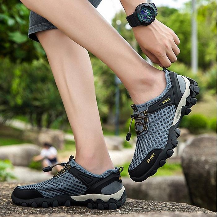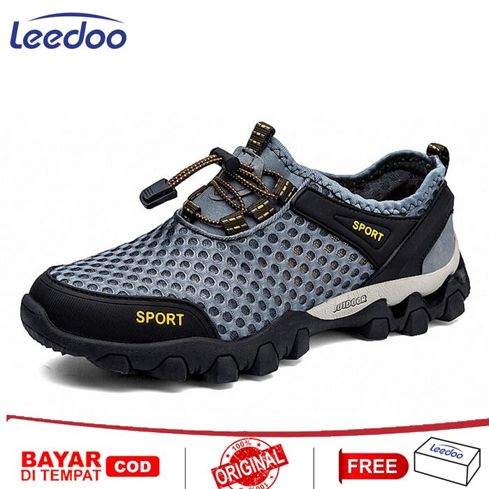 Leedoo Sepatu Hiking Pria Casual Sepatu Gunung Outdoor Anti Slip Adventure Shoes Sepatu Sekolah Siswa Mh205 - Abu-Abu ,
