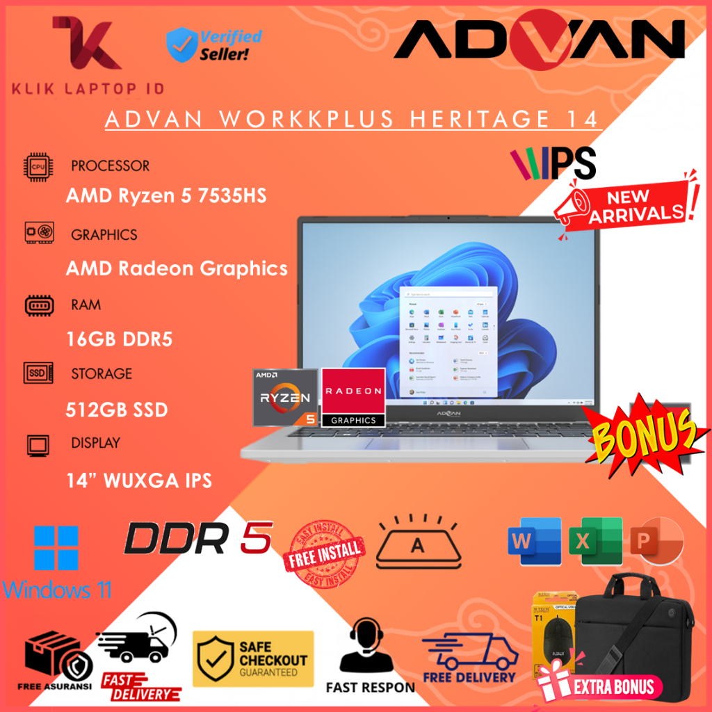 Laptop Advan WorkPlus Heritage 14 Amd Ryzen 5 7534HS 16GB 512GB 14 Inch Wuxga Ips Win11Home Resmi