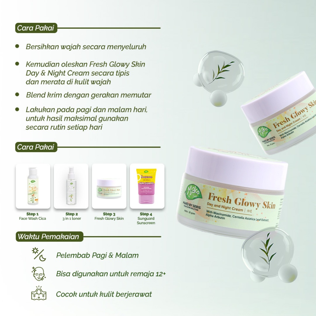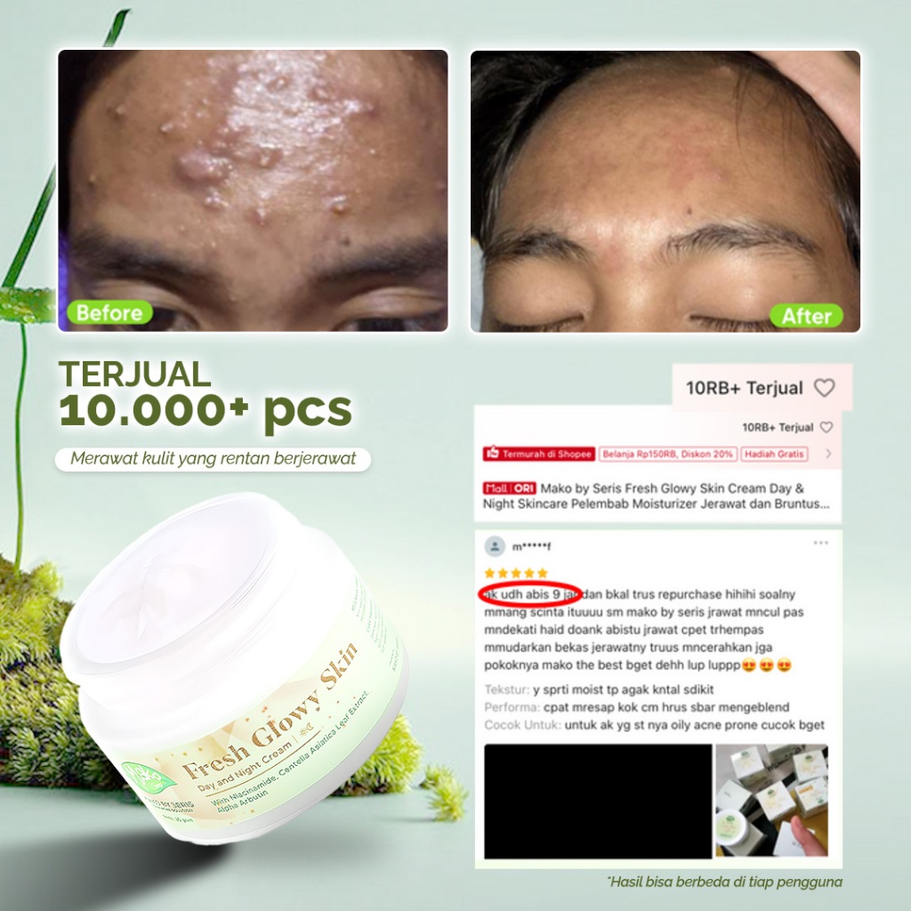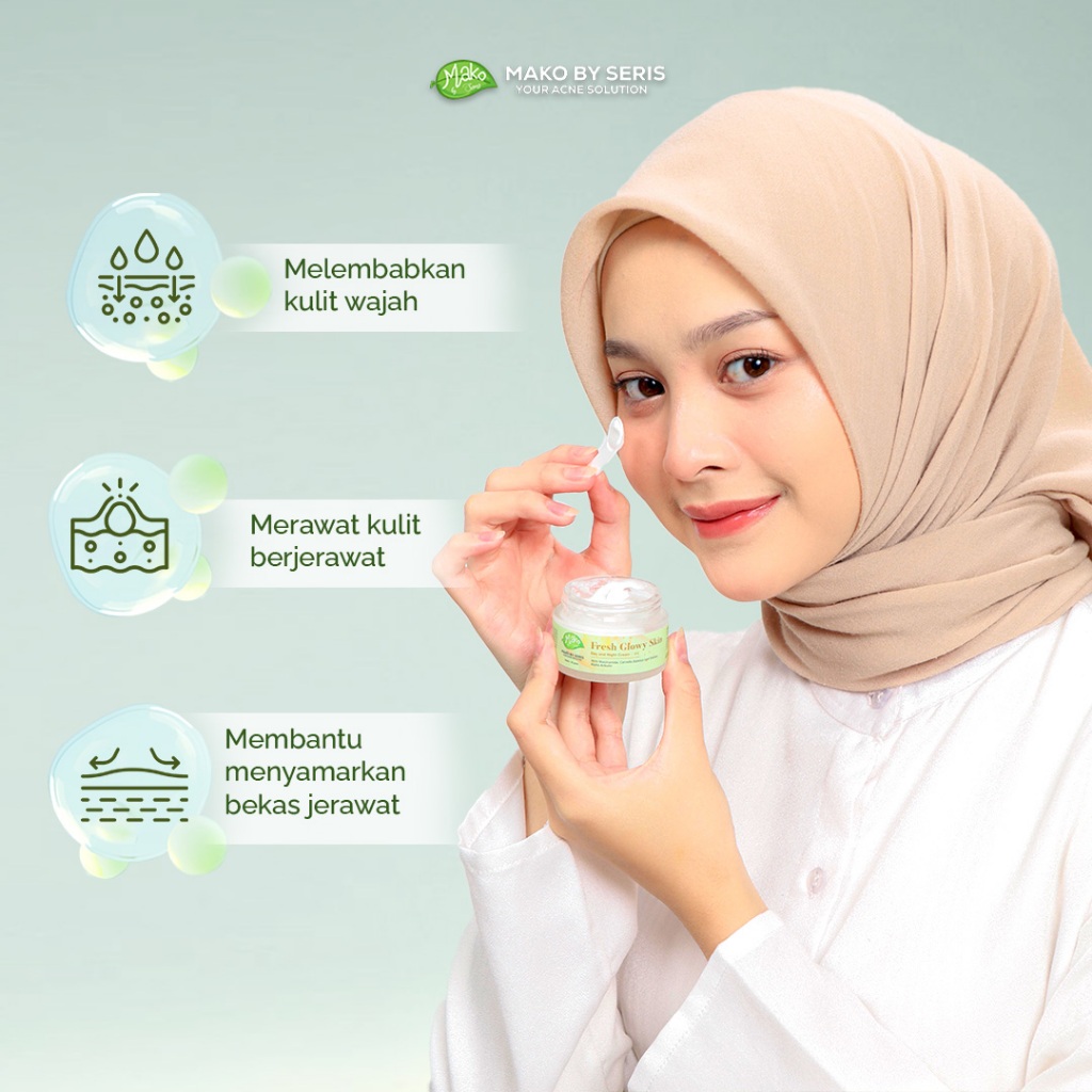 [Mall] Terlaris!! Mako by Seris Moisturizer Fresh Glowy Skin Cream Day & Night Skincare Pelembab Jerawat dan Bruntusan
