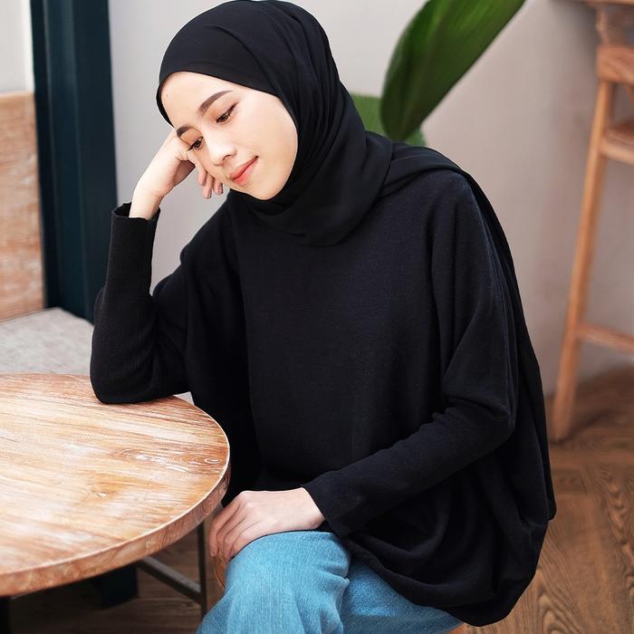Gonegani Official - Atasan Polos Wanita Oversize Batwing Sweater - Black