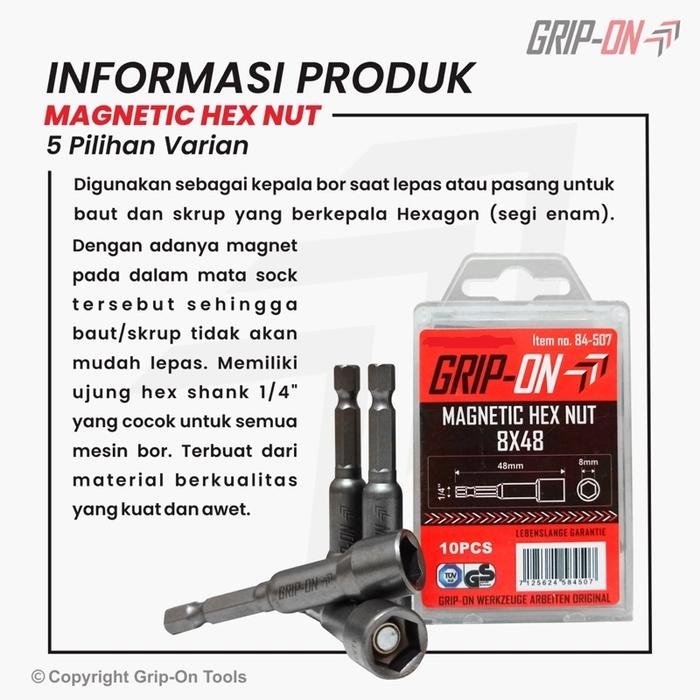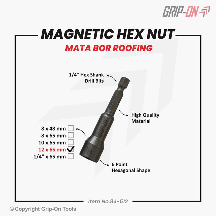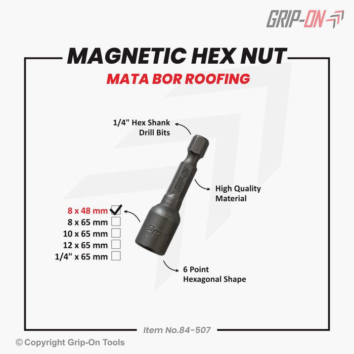 Grip-On Magnetic Hex Nut (1 Pc) / Kunci Baut Roofing / Matabor Roofing - 8 X 48 Mm