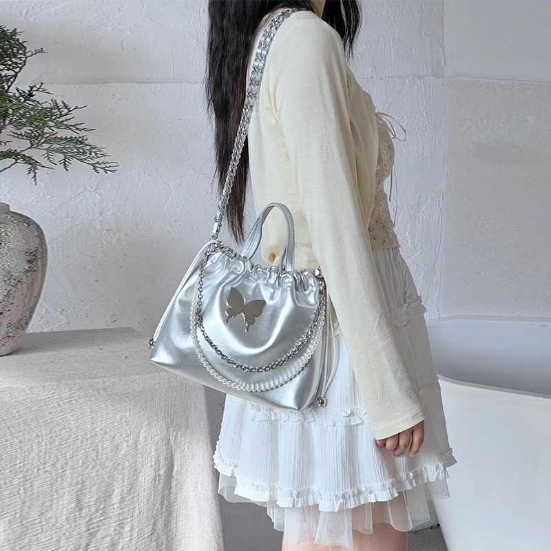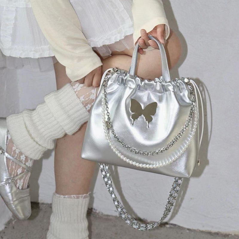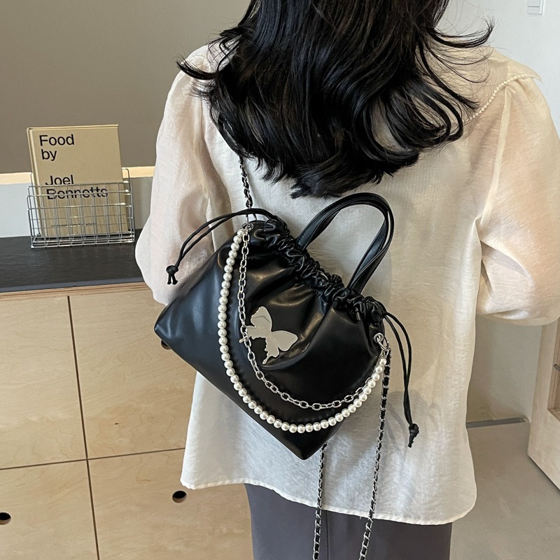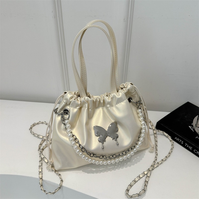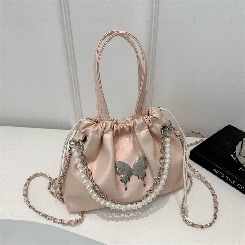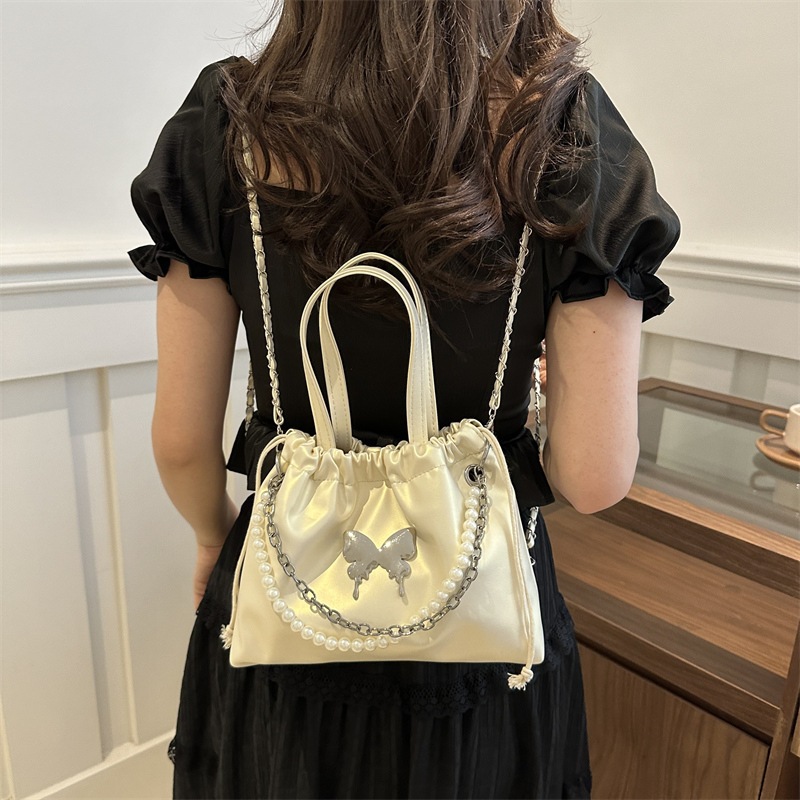 Tas Selempang Tali Serut Modis Hiasan Rantai Mutiara Kupu-Kupu Elegant Tas 3 in1 Ransel Wanita