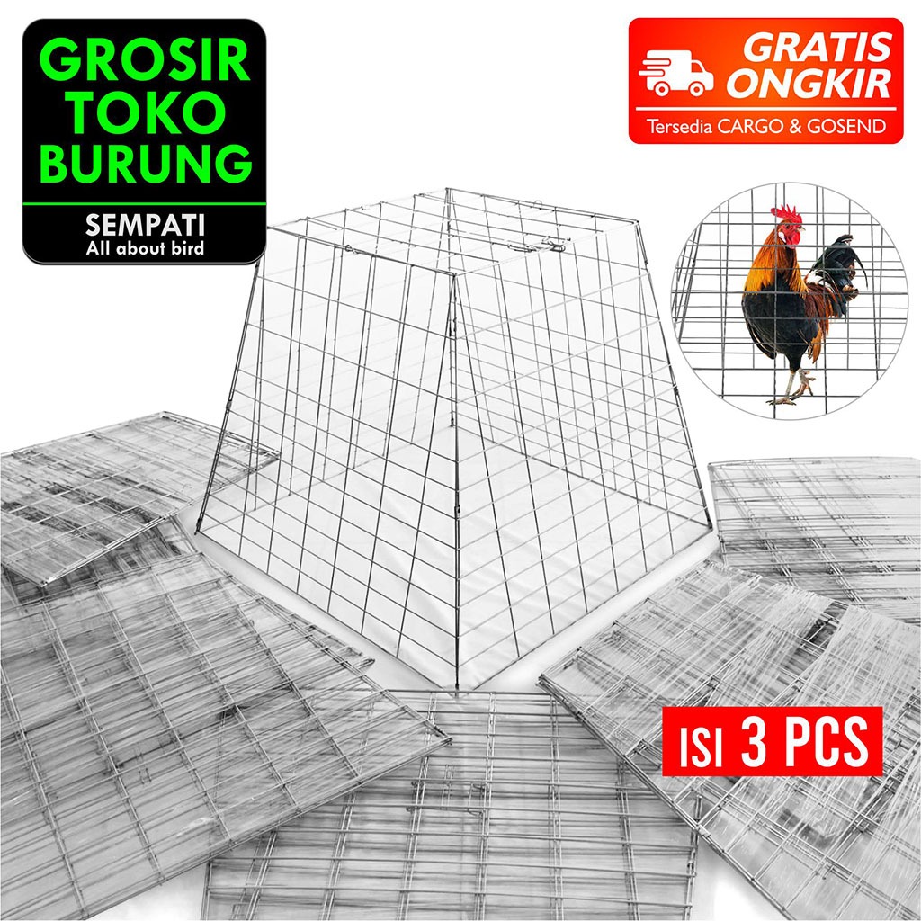 SEMPATI GROSIR Kandang Ayam Jago Sangkar Kurungan Galvanis Piramida Pyramida Isi 3 Pcs Sangkar Besi Kurung Ayam Laga Jag