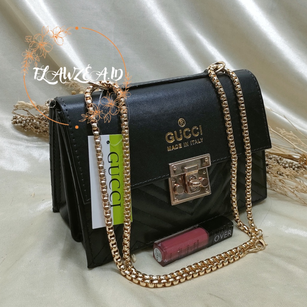 flawzewabag//tas selempang rantai bordil v kunci putar//tas fashion kekinian//tas wanita terbaru//fashion wanita