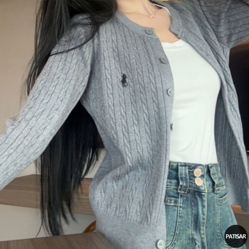 Kardigan Pendek Wanita Mantel Sweter Putar Kardigan Rajutan Antik Bordir Pa