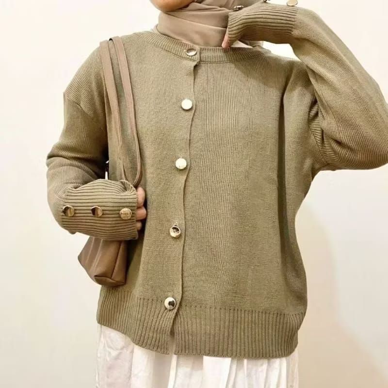 Starla Cardigan Rajut Wanita Lengan Panjang Kancing Gold