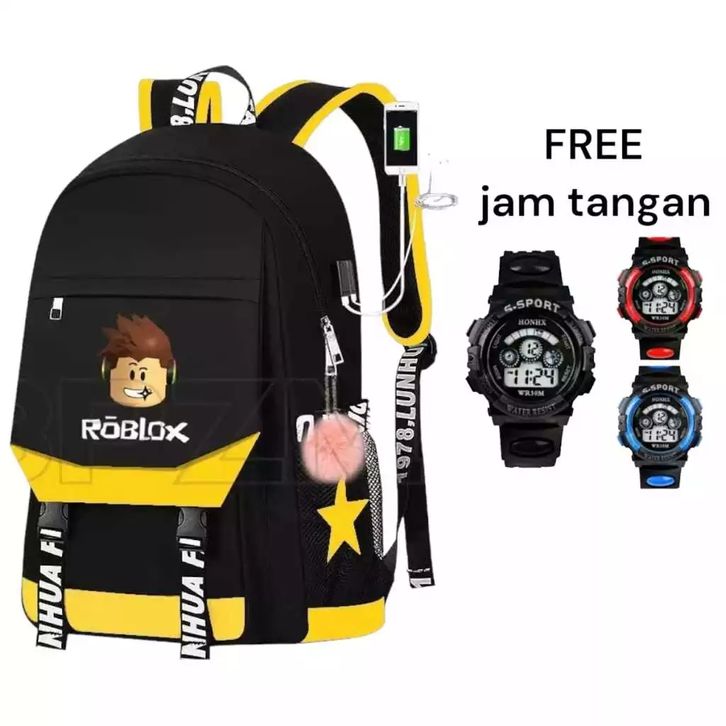 Tas Sekolah Anak Laki Laki Perempuan SD TK Motif Roblox Jam Tangan Botol Minum Series Premium Tas Ransel Gendong Murah
