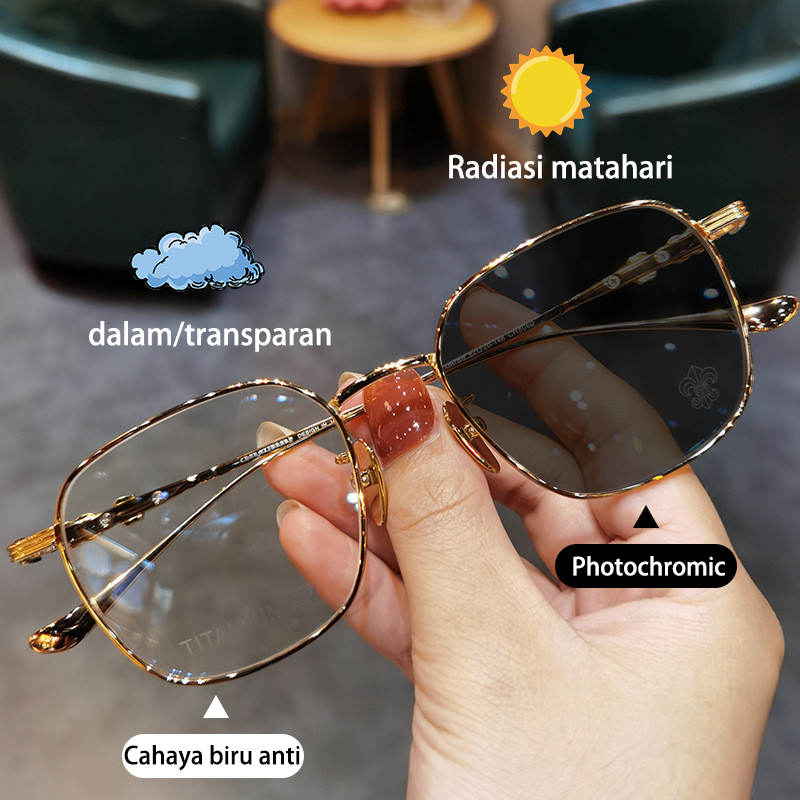 Kacamata Photocromic Bingkai Persegi Metal Anti Radiasi Wanita Pria Kacamata Transisi Komputer
