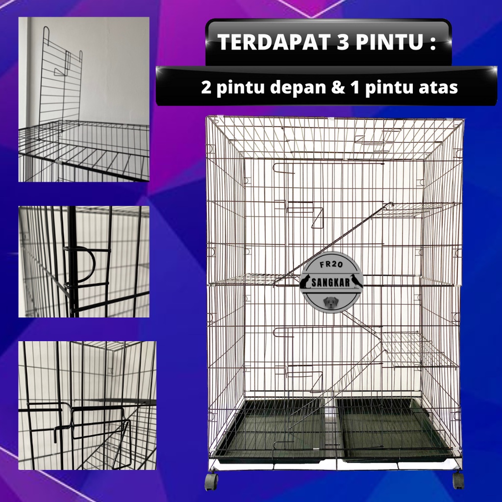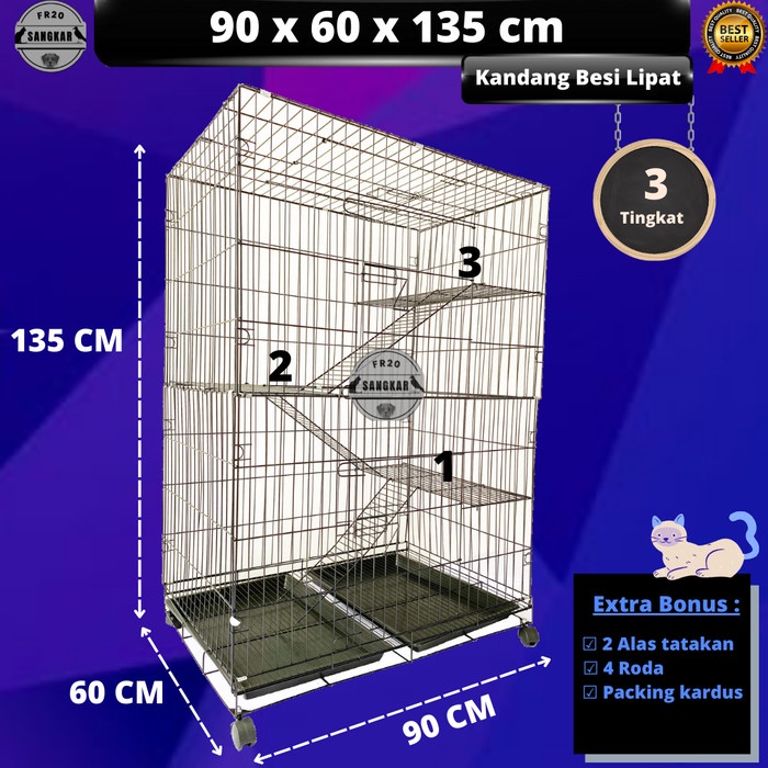 KANDANG KUCING UKURAN 90X60X135CM 3 TINGKAT BESI LIPAT TEBAL - Hitam