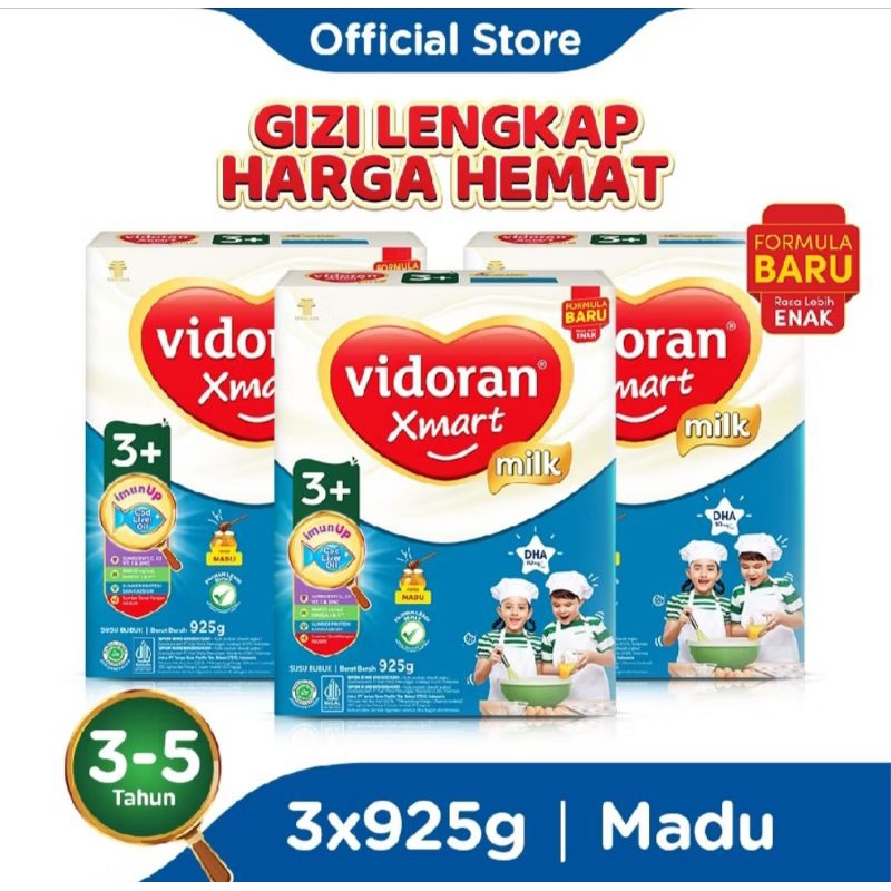 VIDORAN XMART 3+/1+ Madu-Vanila 925gr ( 3 pcs ) Susu Formula Pertumbuhan