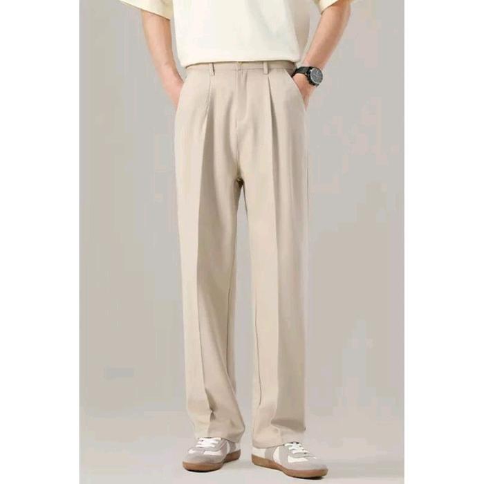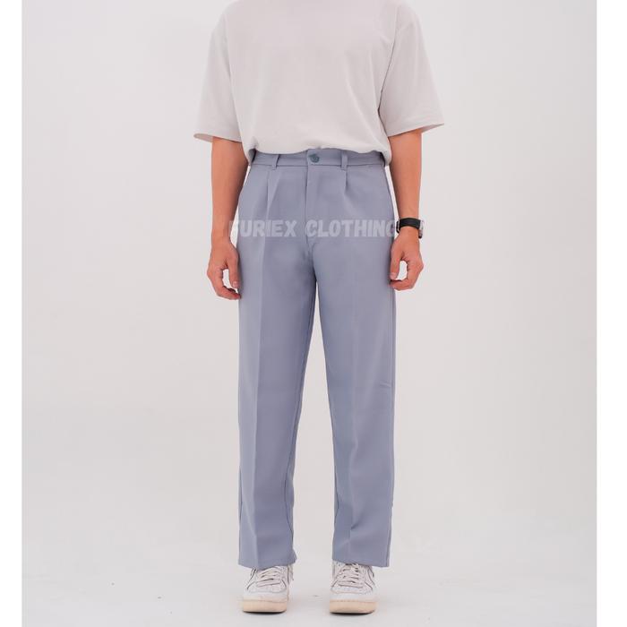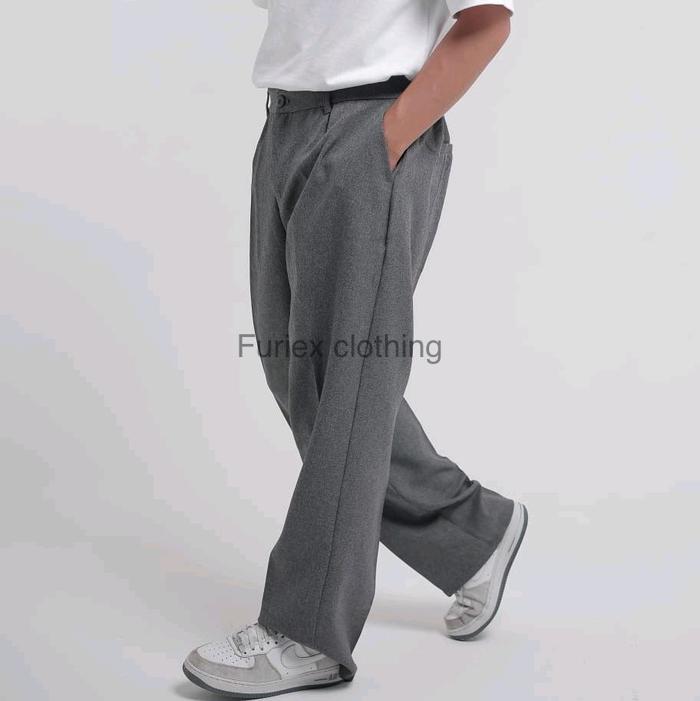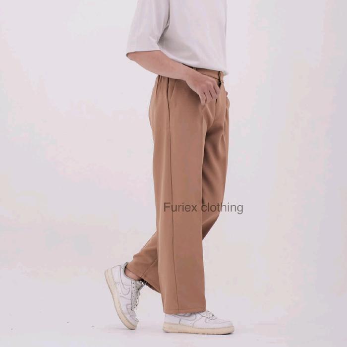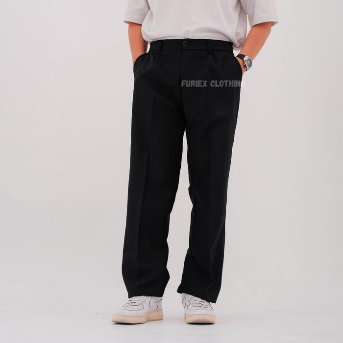 Furiex - Celana Panjang Pria Loose Pants Fit Pinggang Karet Celana Bagypants Pria Woll Blazer Casual Formal - Hitam, S
