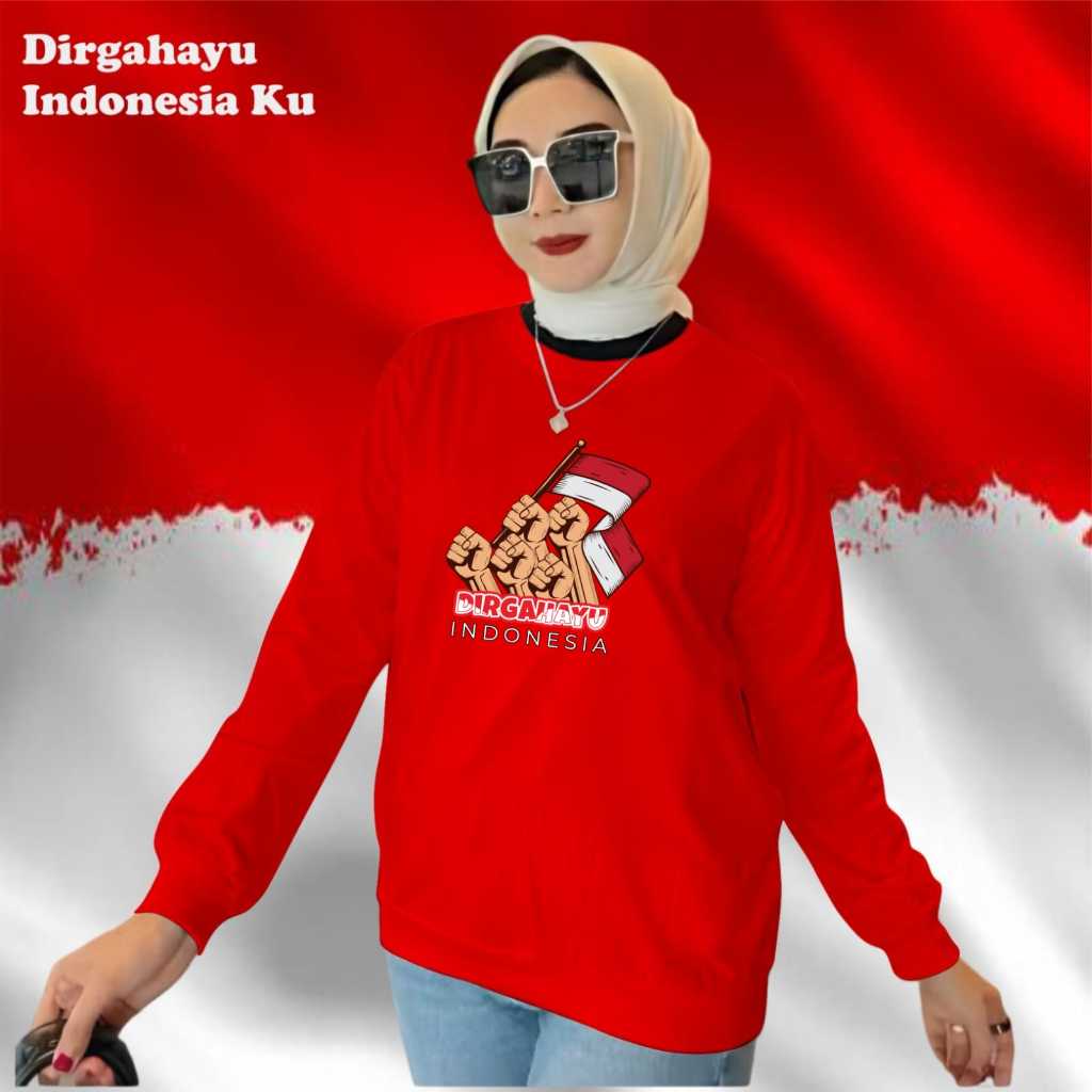 Baju Kaos Lengan Panjang Wanita Edisi Hut RI 80 Merah Putih Agustusan 17 Agustus 2025