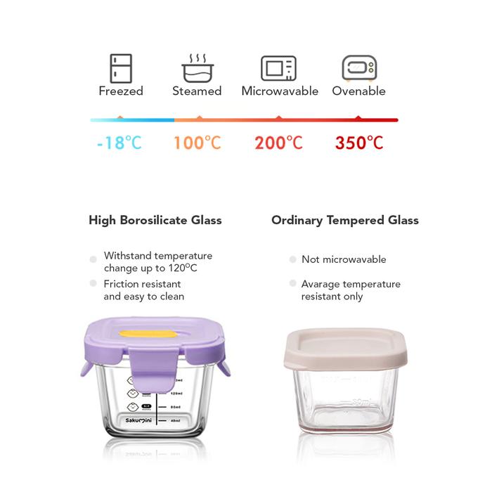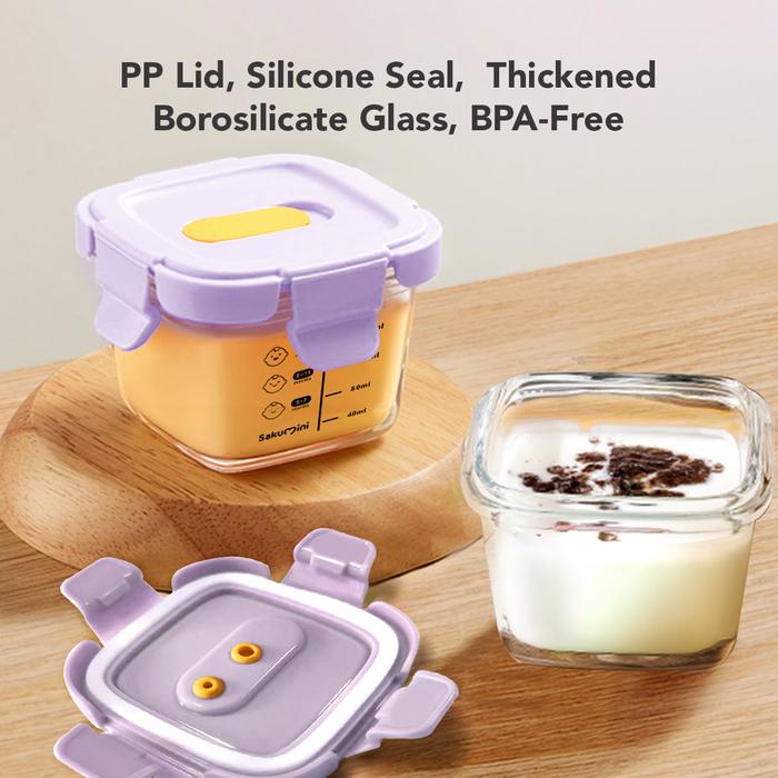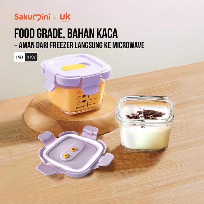 Sakumini Glass Food Container 3In1 Storage Jar Bowl Wadah Gelas Kaca Borosilikat Mpasi Bayi - Hijau 3Pcs160Ml