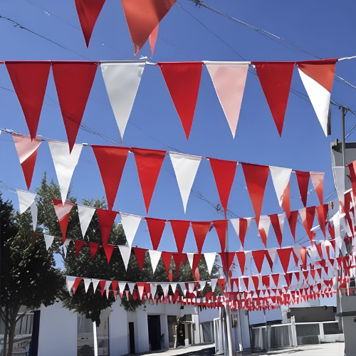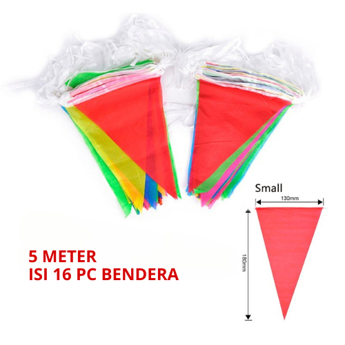 Bendera Segitiga Merah Putih HUT RI – Dekorasi 17an Panjang 5 Meter, Isi 16 Pcs