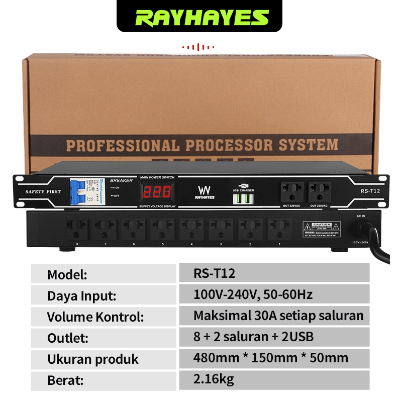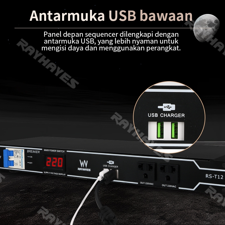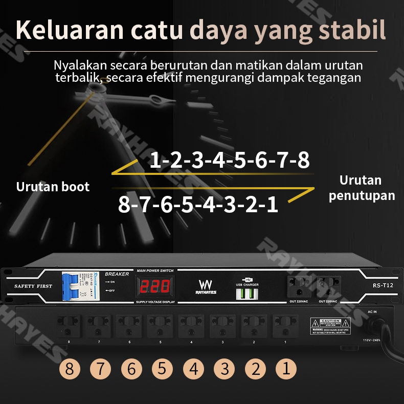 [Star] RAYHAYES RS-T12 Pengontrol Urutan Daya Pengkondisi Catu Daya Pemasangan Rak 10 stopkontak