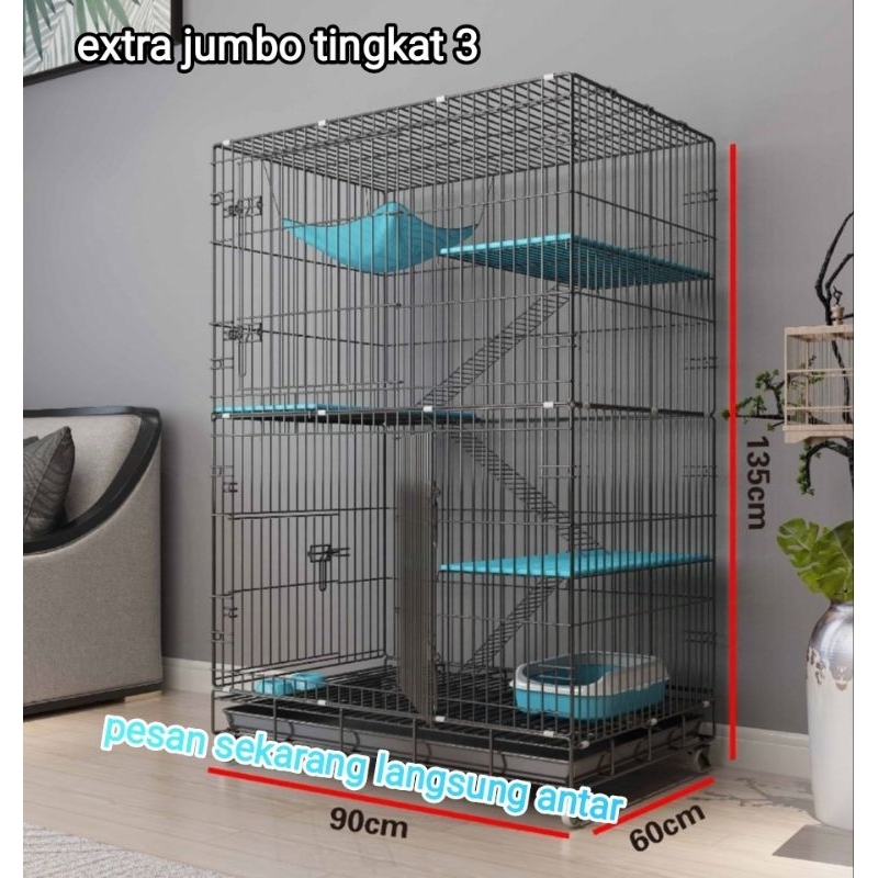 Kandang Kucing 3 Tingkat Size XXL 90X60X130cm /Kandang Hewan Peliharaan Bahan Besi