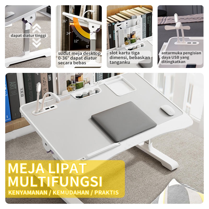Meja Laptop Portable Dengan USB Port Bonus Kipas Lampu Meja Belajar Anak Laptop Serbaguna Folding Meja Lipat Tablet Me