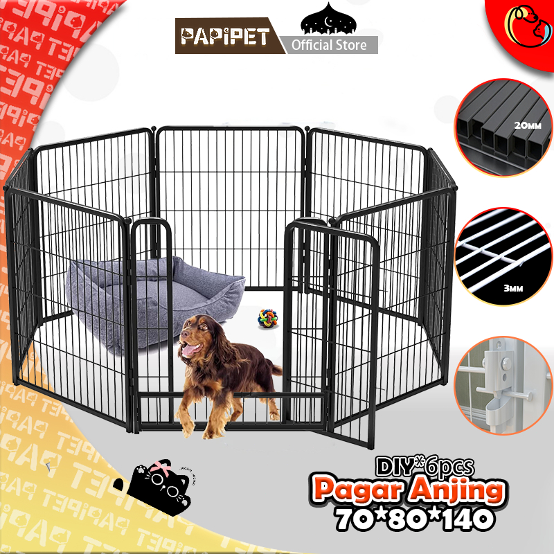 Pagar Anjing Modular Besi Anti Karat Pagar Perlindungan Hewan Peliharaan Kandang Anjing 60x60/120x60