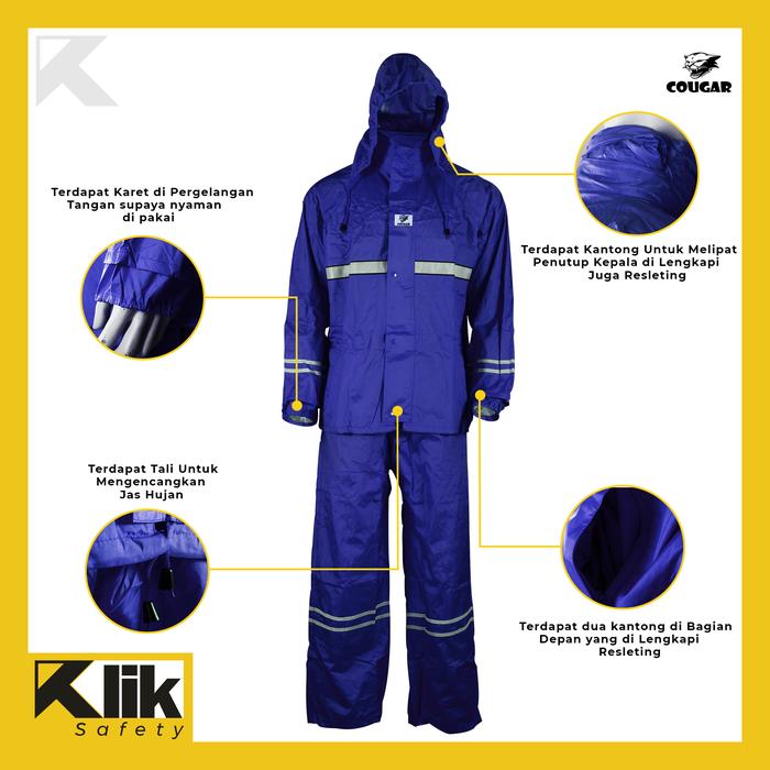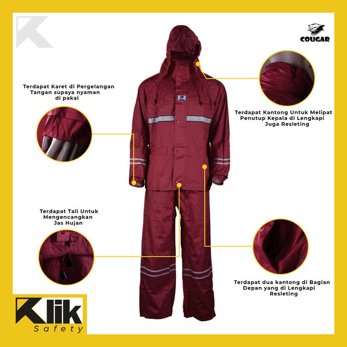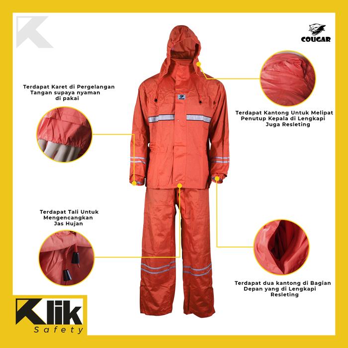 Jas Hujan Safety Rain Wear Cougar Oxford Jaket Celana Reflektif Ori - Orange, M