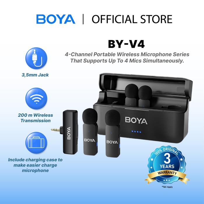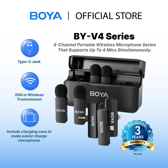 BOYA BY-V4 / V4D / V4U Mikrofon Klip Nirkabel 2.4GHz 4 Pemancar Ultracompact Wireless Microphone Koneksi Port Lightning
