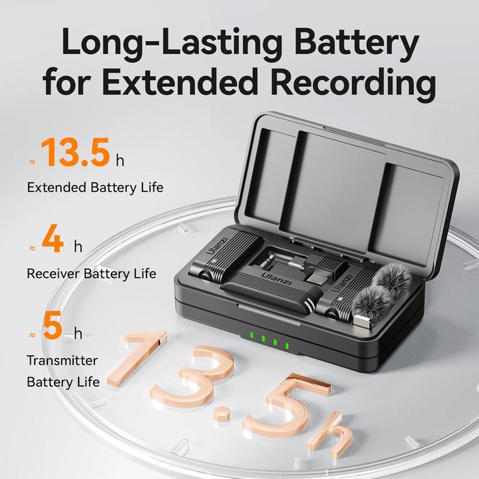 Ulanzi A100 2.4GHz Wireless Microphone System with Charging Case for Camera & Smartphone USB-C and 3.5mm plug-in audio a
