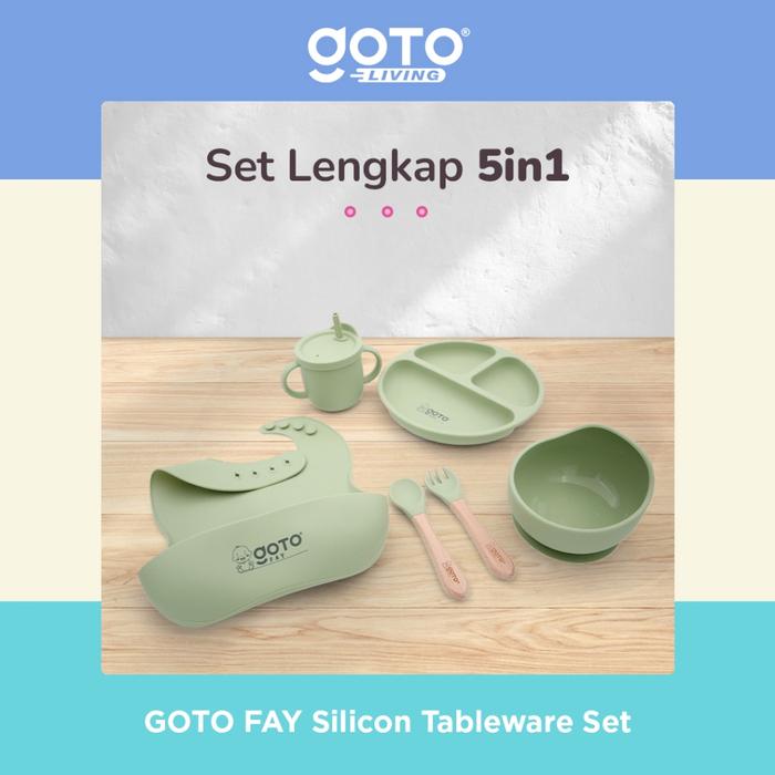 Goto [] Fay Tableware Set Alat Makan Bayi Silikon Peralatan Mpasi 5In1 - Pink