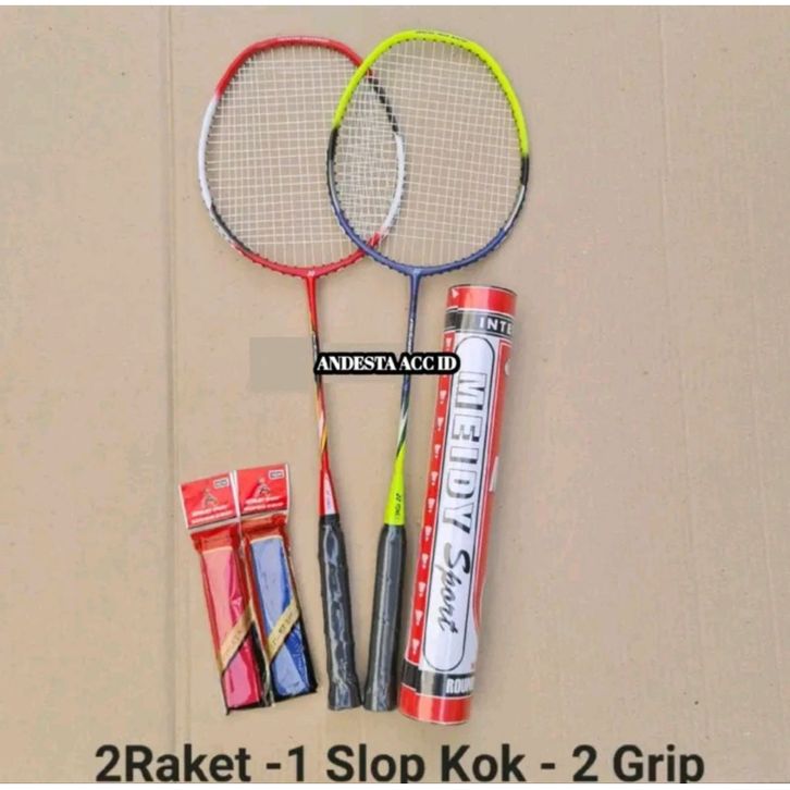 RAKET BADMINTON PAKET LENGKAP MODEL SENYAWA TERLARIS 2 RAKET 2 GRIP 1 TAS 12 KOK FREE PACKING KAYU GRATIS ONGKIR
