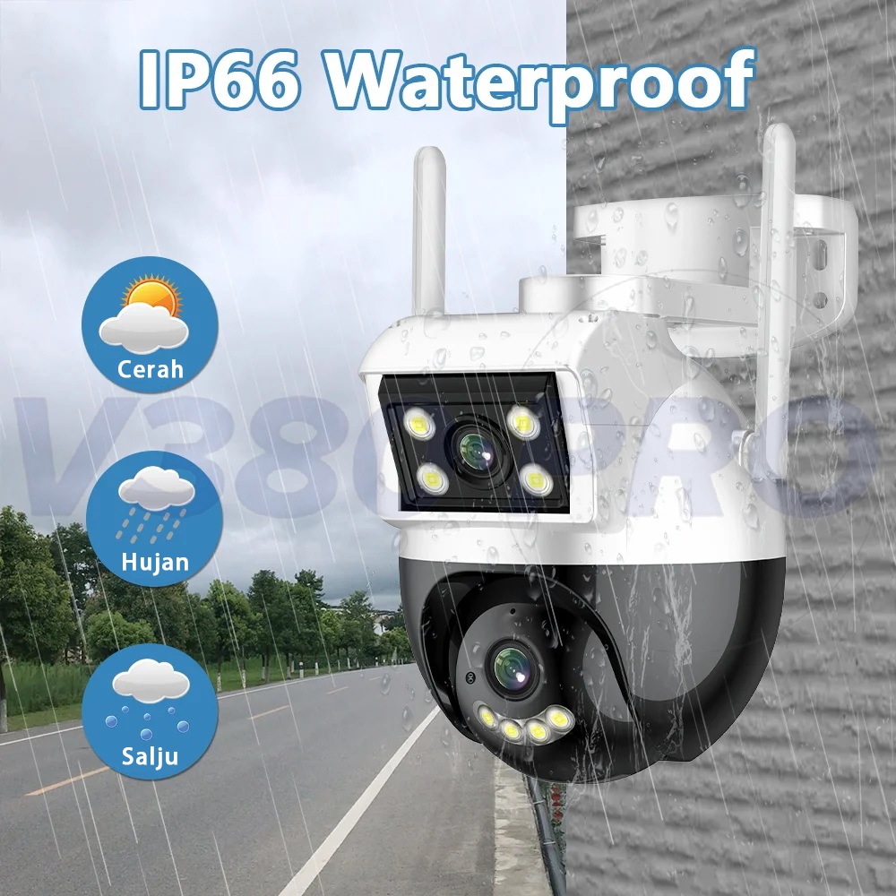 Cctv V380 Pro Dual Lens HD 6MP Mini Sambung Ke Wifi HP indoor Outdoor Tanpa Kabel Murah Berkualitas Modern 2024-2025