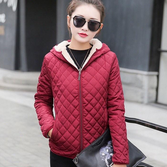 Jaket Bulu Tebal Musim Dingin Wanita Winter Jacket With Hoodie - Navy, Int:L