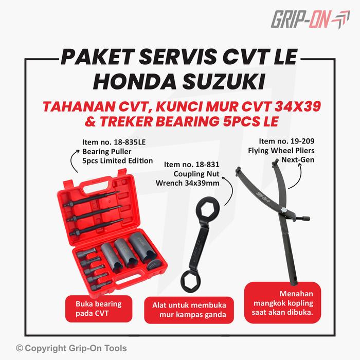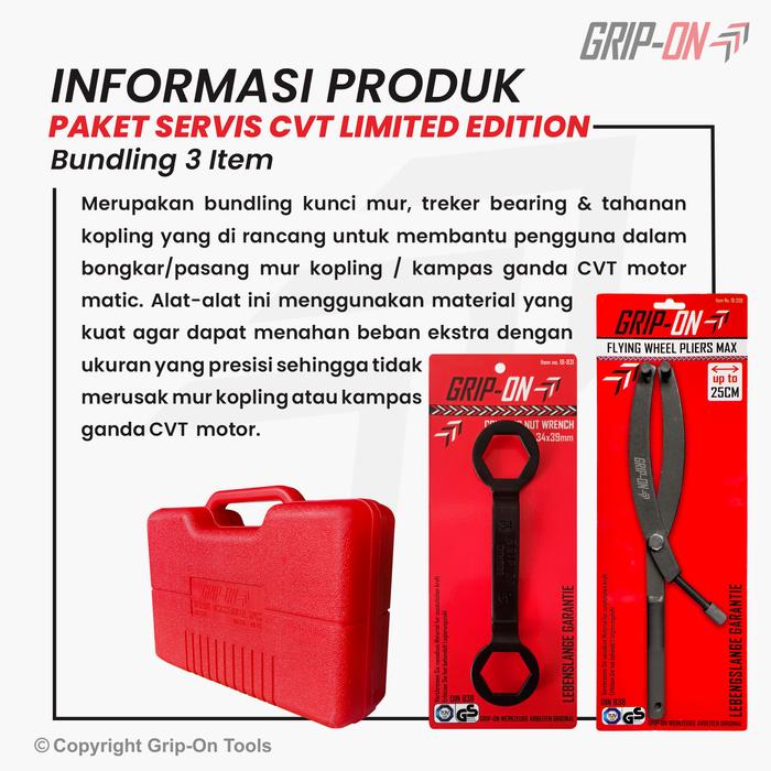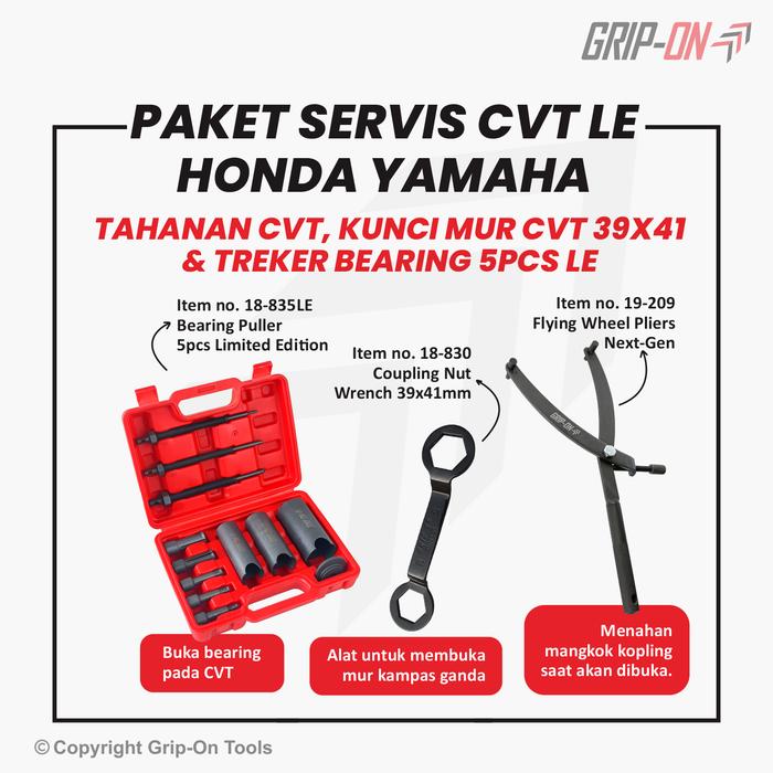 Grip-On Paket Service Cvt Bundling 3 Alat - Tahanan Cvt + Kunci Mur Cvt + Treker Bearing 5 Pcs Limited Edition Untuk Hon