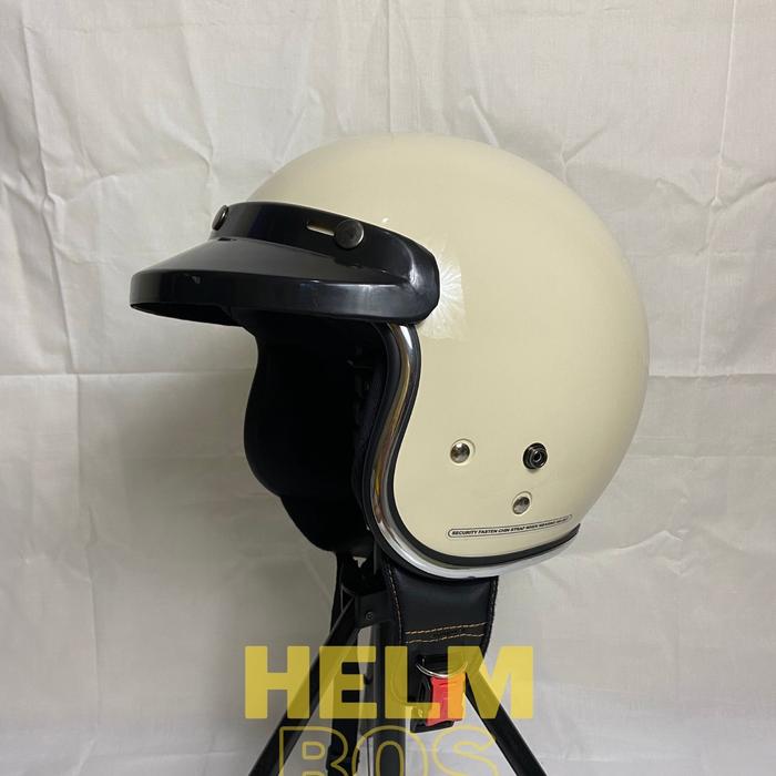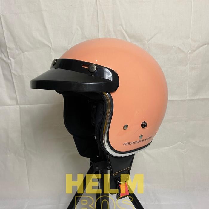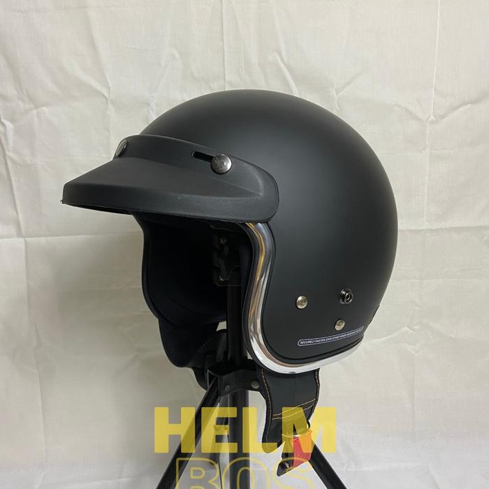 Helm Retro Half Face Lis Cromer + Pet Original Motorcycle - Hlem + Pet, Hitam Glosy