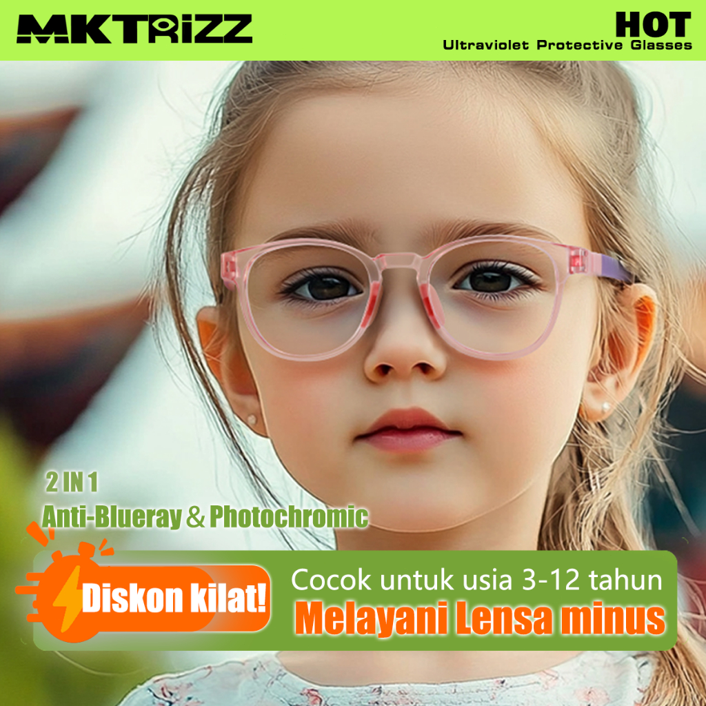 MKTRIZZ Kacamata Anti Radiasi Anak Kids TR90 Bahan lembut Keamanan dan kenyamanan Kacamata Oval Pink