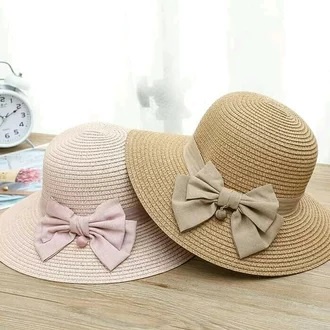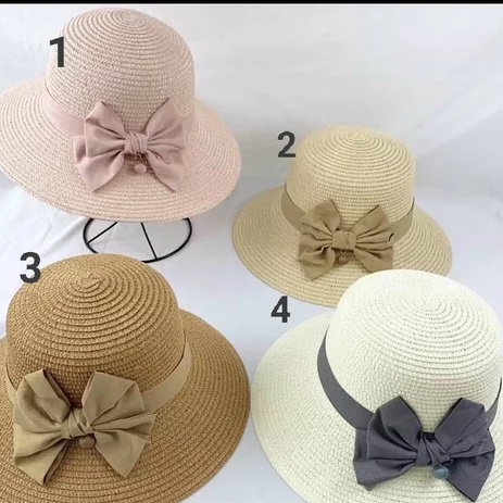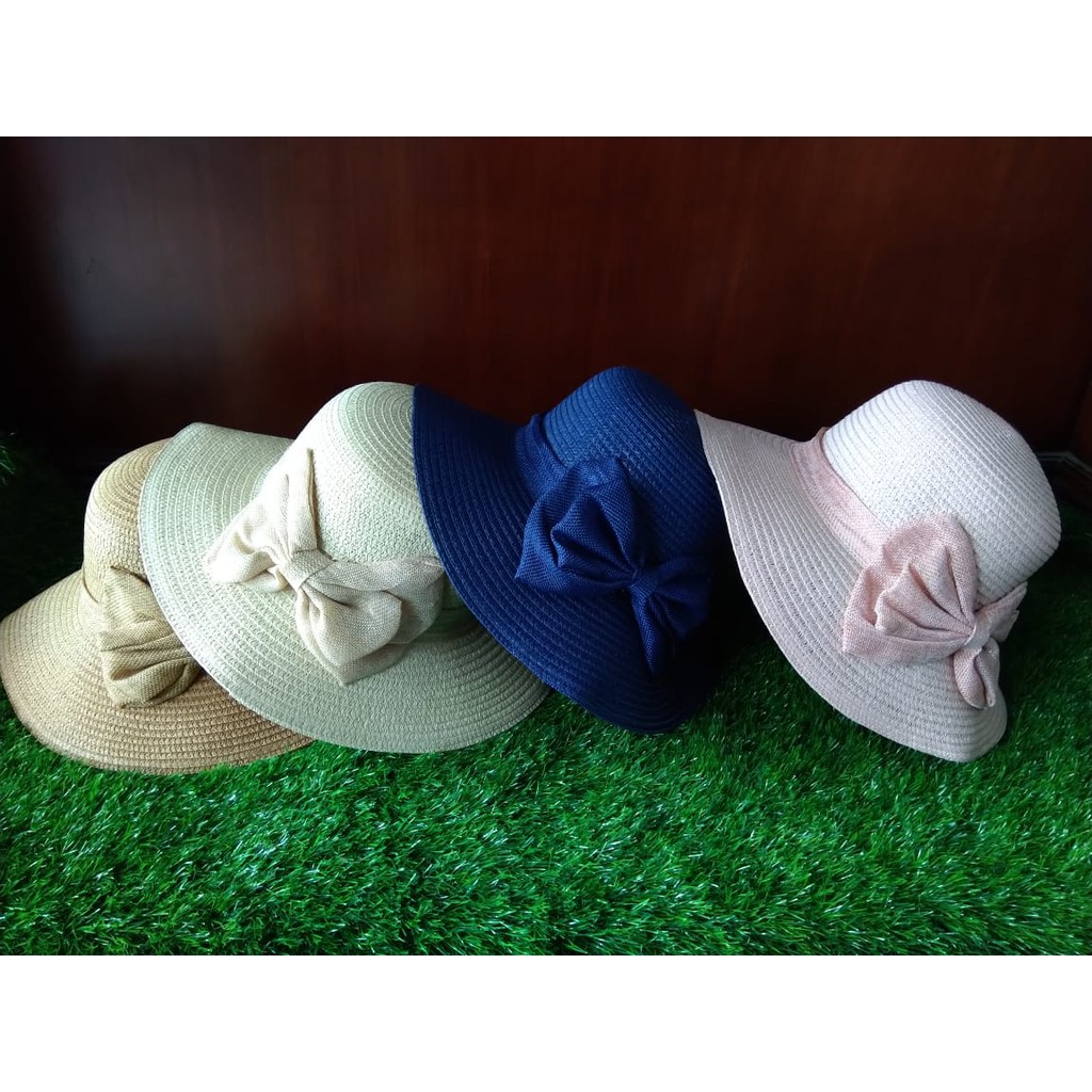 TOPI PANTAI WIDE BUCKET JERAMI, AKSEN PITA (INCLUDE PACKING DUS)
