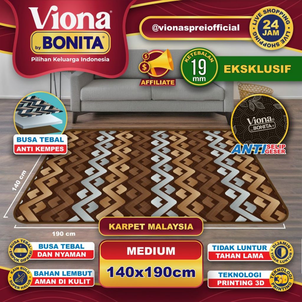 VIONA BONITA 190x220 Karpet Busa Malaysia 19mm eksklusif Motif minimalis - Karpet Lembut & Anti Licin (AF)