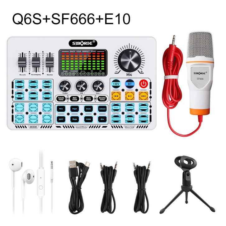 SIBORIE Q6S SOUND CARD+SF666/MS36/M998 MIC WHITE FULL SET PAKET RECORDING LENGKAP SATU SET DUDUKAN LENGKAP//FREE HEADSET