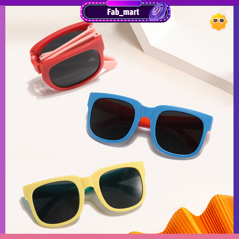 Kacamata hitam lipat anak-anak warna-warni untuk anak laki-laki dan perempuan kacamata pelindung matahari portabel FABM
