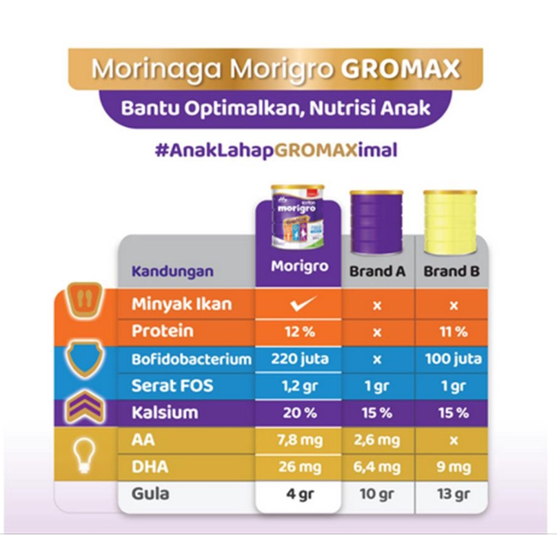 MORIGRO GROWMAX PAKET 2 VANILA KALENG MADU KOTAK 800GR SUSU PENAMBAH BERAT BADAN KALORI TINGGI 800 GR SSKL